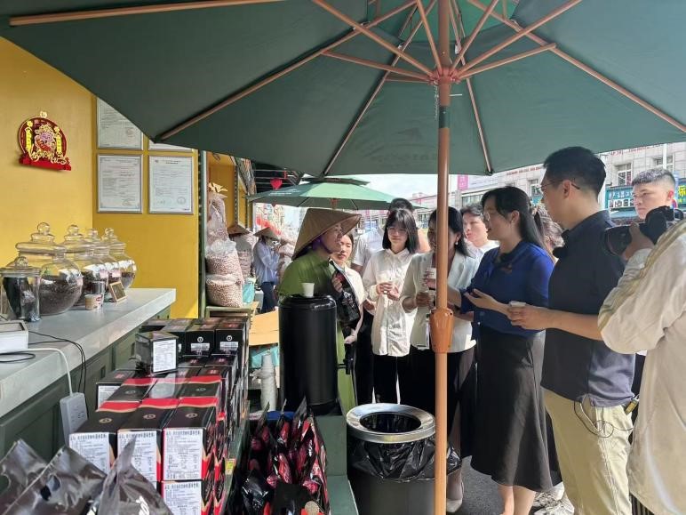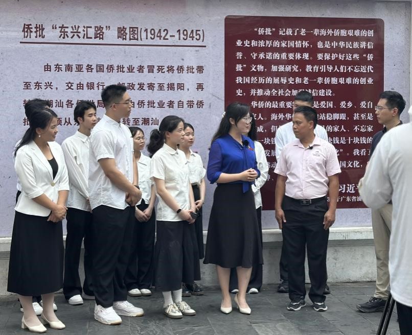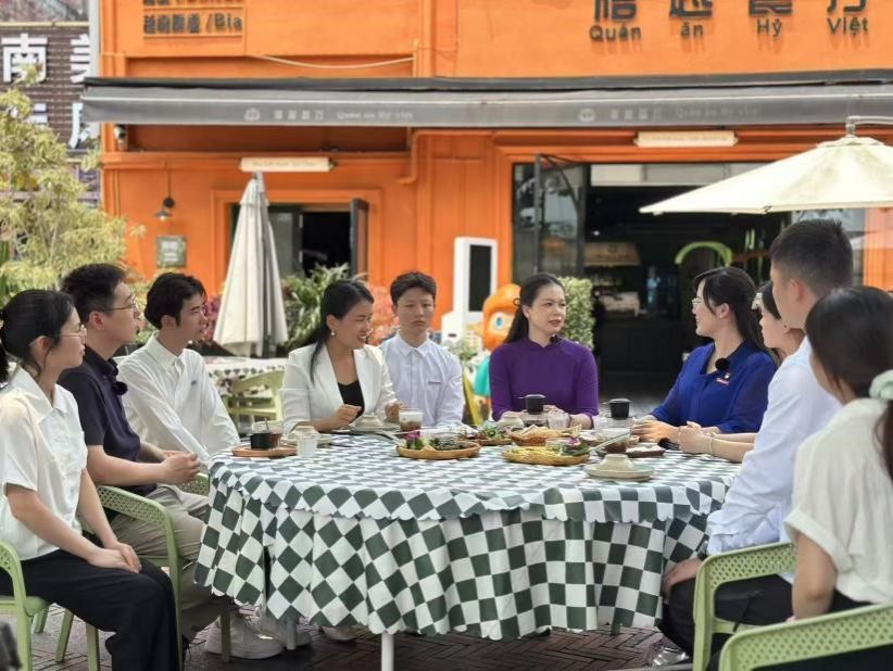 第三站,师生走访了禧越餐厅、国门街、侨批馆。太阳集团tyc4633冯舒讌老师以《国门下的繁荣——中越命运共同体》为主题,带领大家与餐厅经营者、商铺售货员、展馆讲解员进行深入交流。在禧越餐厅,餐厅主人热情地与我们分享了中越饮食文化交融的故事;在国门街,经营者们忙碌的身影展现着边境贸易的繁荣景象;在侨批馆,一件件承载着老一辈海外侨胞创业史与家国情怀的文物,诉说着中华民族讲信誉、守承诺的优良传统。冯老师结合当地实际,生动讲述了中越两国在经贸合作与文化交流等方面的互联互通,让师生们深刻理解了习近平总书记4月14日访问越南时所强调的“构建具有战略意义的中越命运共同体,是历史的选择,是人民的选择”的深刻内涵。