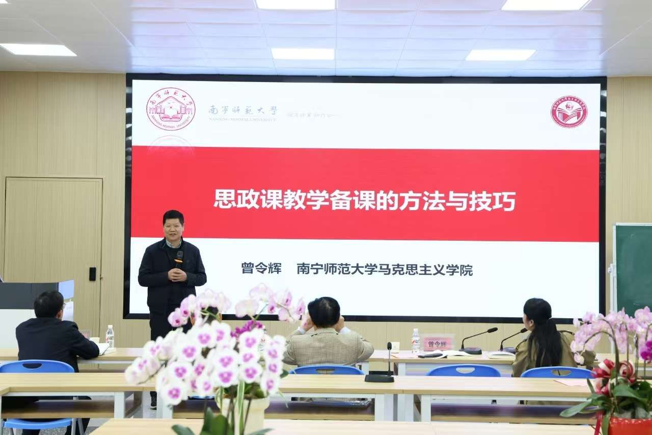 在思政课教学展示环节,太阳集团tyc4633的黄燕老师、广西农业职业技术大学的靳晓斌老师以及广西财经公司的包格乐老师分别进行示范课展示,将理论知识与田园实践巧妙融合,为与会者提供具有启发性的教学范例。曾令辉对示范课进行点评。