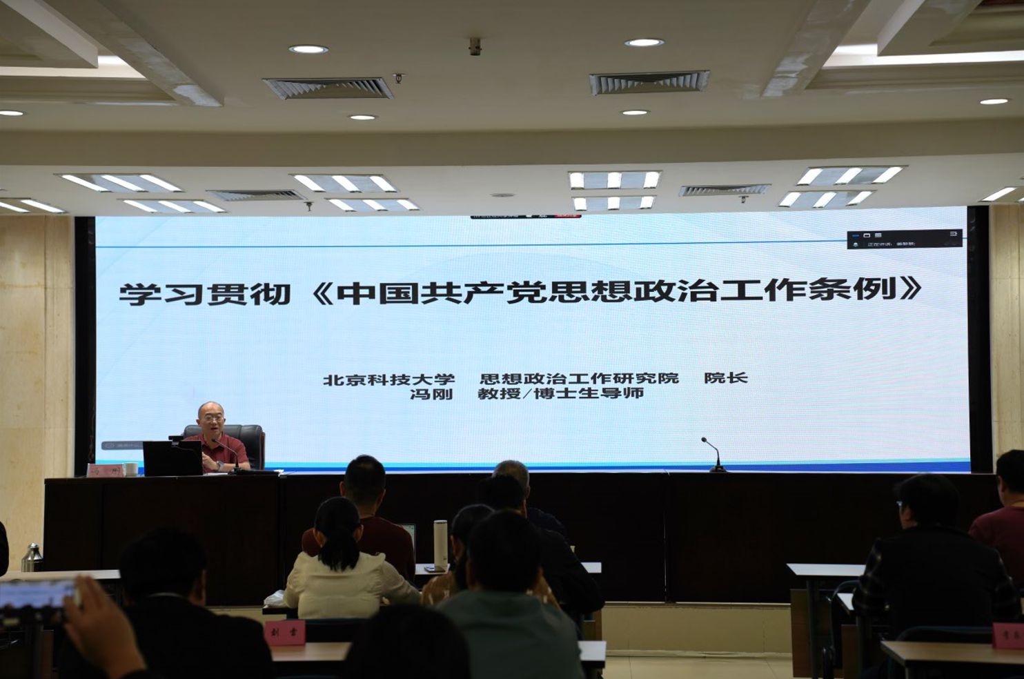 冯刚教授以《提升思想政治工作科学化制度化规范化水平——学习贯彻〈中国共产党思想政治工作条例〉》为题,深入解读《条例》精神。冯刚指出,《条例》是党的历史上第一部关于思想政治工作的综合性党内法规,具有里程碑意义。