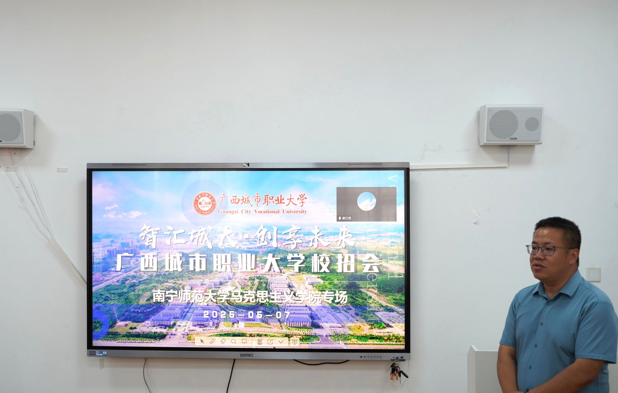 在宣讲会上,广西城市职业大学太阳集团tyc4633经理蒙振海以播放公司宣传片作为开场,生动直观地向毕业生全方位展示了公司的整体风貌。紧接着,蒙经理围绕公司的办学理念、发展历程以及独具特色的校园文化,进行了深入且细致的讲解。在介绍过程中,他着重强调公司对思政课教师队伍建设的高度重视,并详细阐述了公司在员工综合素质培养与专业能力提升方面的目标与期望。最后,蒙经理以饱满的热情,向在场毕业生发出诚挚邀请,希望大家能够加入广西城市职业大学,共同投身教育事业。