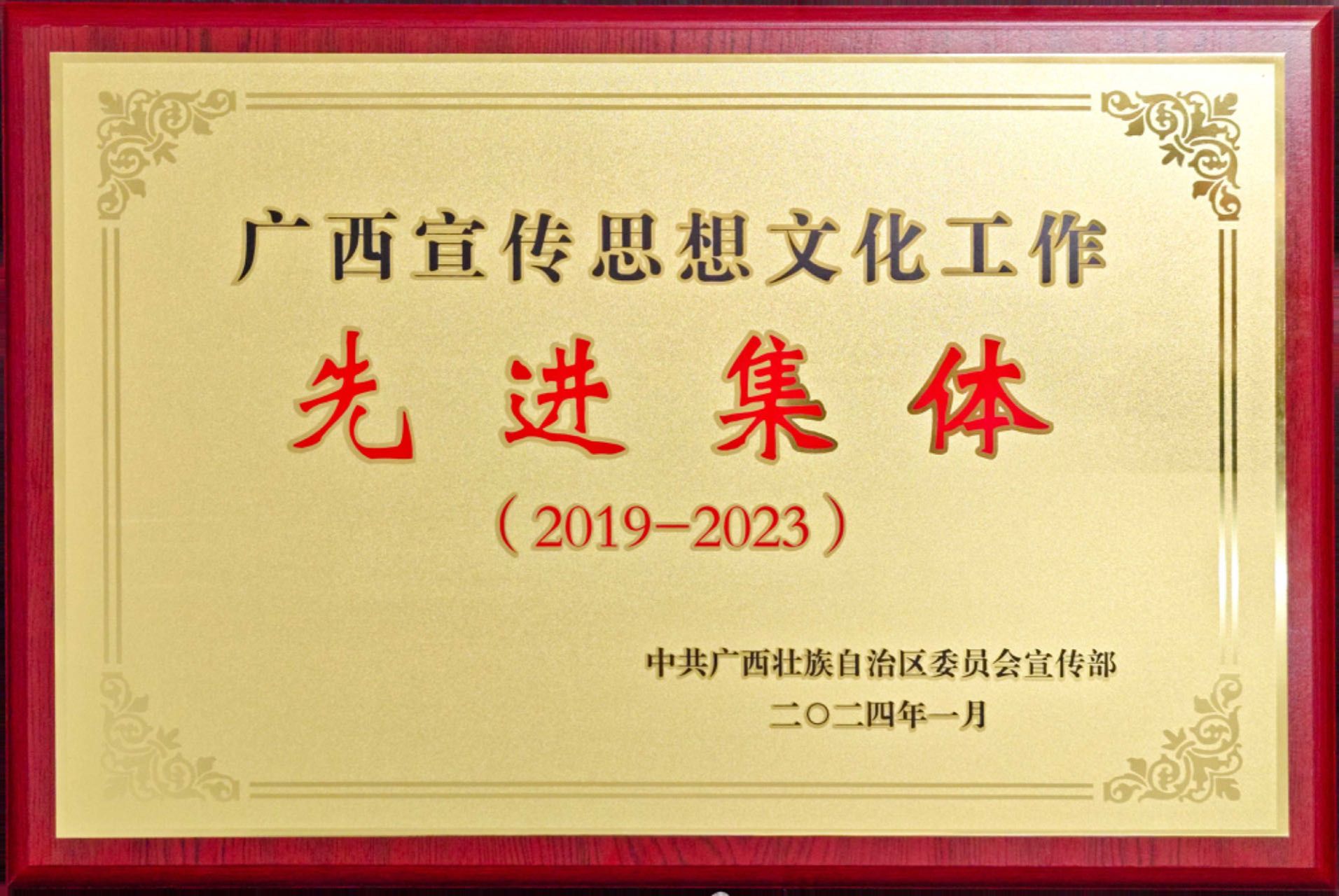 近日,为表彰先进、树立典型,弘扬正气、激励斗志,汇聚起建设新时代壮美广西的磅礴力量,广西壮族自治区党委宣传部决定,授予100个单位“广西宣传思想文化工作先进集体”称号,授予200名个人“广西宣传思想文化工作先进个人”称号。公司太阳集团tyc4633获评“广西宣传思想文化工作先进集体(2019—2023)”。