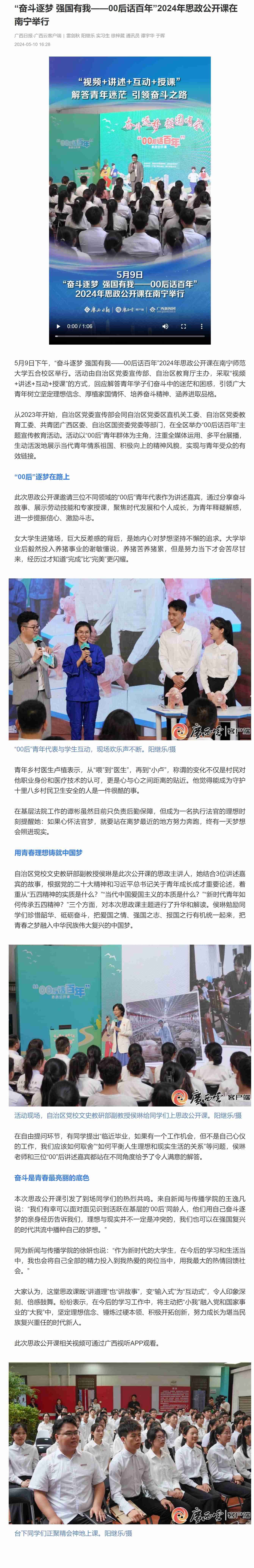 【媒体马院】“奋斗逐梦 强国有我——00后话百年”2024年思政公开课在南宁举行