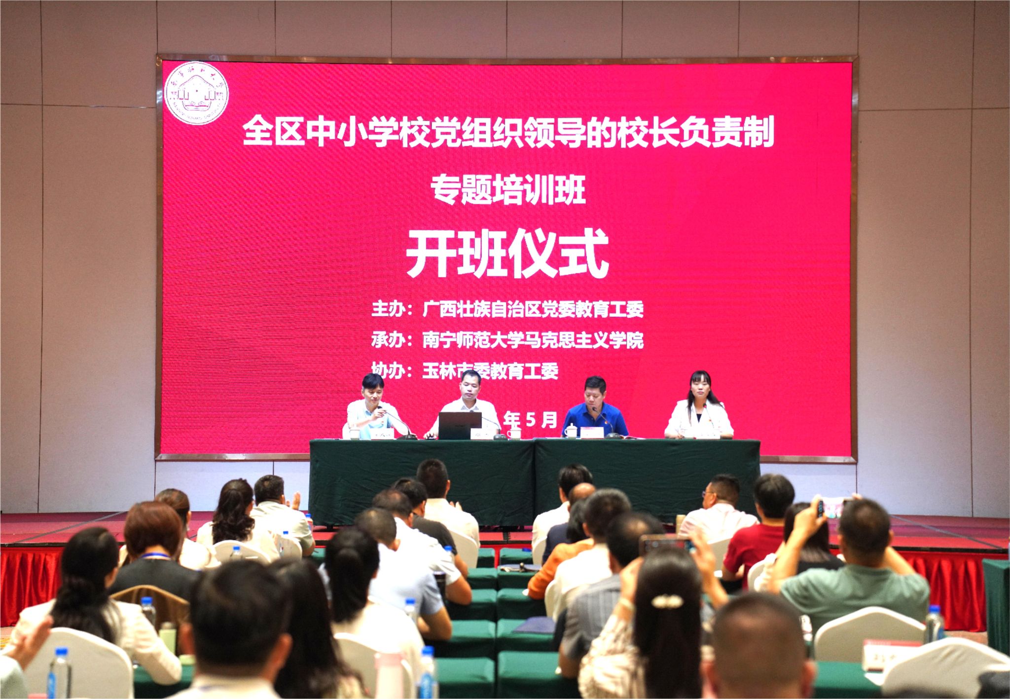2024年5月6日-9日,由自治区党委教育工委主办、太阳集团tyc4633承办及玉林市党委教育工委协办的全区中小公司党组织领导的董事长负责制专题培训班在玉林顺利举办。来自全区部分市、县(市、区)党委教育工委专职副书记及中小公司党组织书记共100名学员参加了本次培训。自治区党委教育工委组织部三级调研员邓杰、太阳集团tyc4633经理曾令辉教授、玉林市委教育工委专职副书记梁武润及太阳集团tyc4633教师姜黎黎出席开班仪式。
