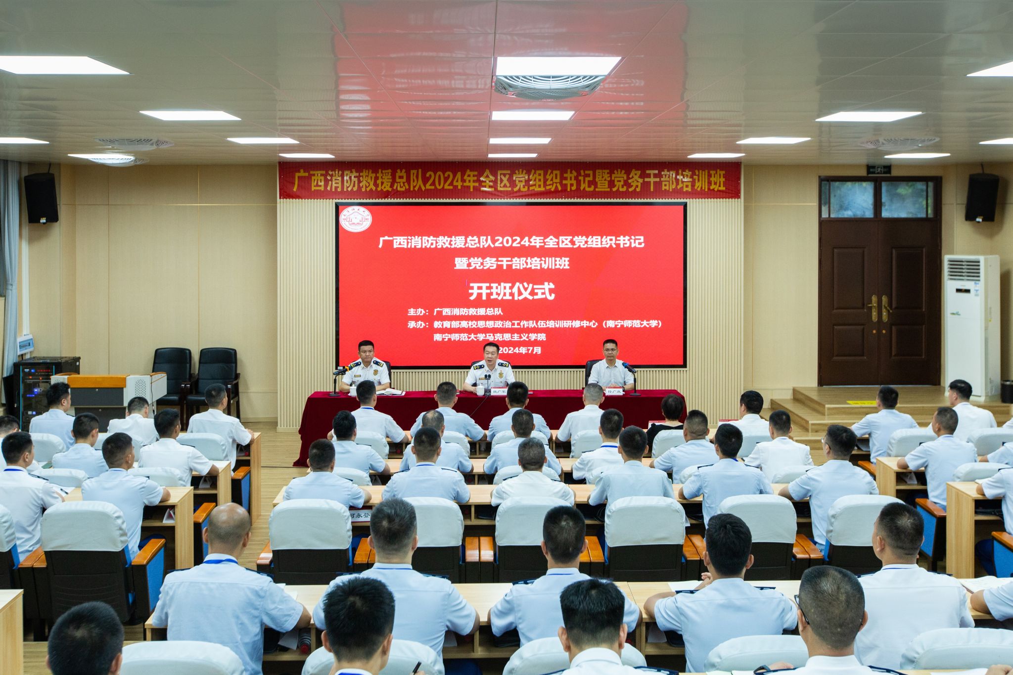 广西消防救援总队2024年全区党组织书记暨党务干部培训班开班仪式现场