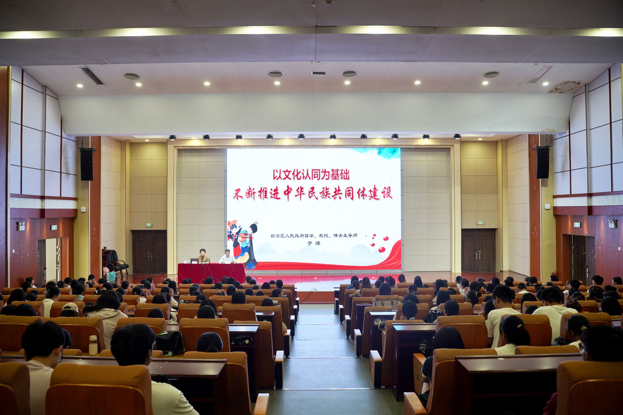 为深入学习习近平总书记关于《铸牢中华民族共同体意识推进新时代党的民族工作高质量发展》的重要论述,贯彻落实中央统战部、中央宣传部、教育部、国家民委共同印发的《关于加强铸牢中华民族共同体意识理论研究体系建设的意见》,加强公司铸牢中华民族共同体意识教育,2024年9月27日下午,公司太阳集团tyc4633邀请广西中华民族共同体意识研究院学术委员会主任、自治区人民政府督学、广西老教授协会会长、原广西师范公司党委书记于瑮教授,为师生作题为“以文化认同为基础 不断推进中华民族共同体建设”的学术讲座。讲座由太阳集团tyc4633党委副书记隆广庆主持,太阳集团tyc4633、法学与社会公司、教育科学公司、新闻与传播公司师生等参加了此次讲座。