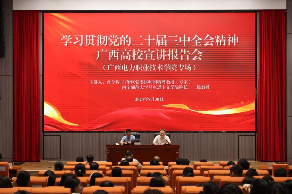 宣讲会上,曾令辉经理以《全面学习全面领悟全面贯彻党的二十届三中全会精神,加快推进教育现代化和教育强国建设》为题,从“深刻认识全会的重大意义”“深入学习领会习近平总书记在全会上的重要讲话精神”“全面准确理解《决定》提出的进一步全面深化改革重要举措”“全力以赴抓好全会精神贯彻落实”等方面,作了系统宣讲和深入阐释。他指出,全会专门对深化教育综合改革作出重要部署,意义十分重大;要深入学习领会、坚决贯彻落实全会精神,统筹推进育人方式、办学模式、管理体制、保障机制改革,奋力书写以教育强国建设支撑引领中国式现代化的新篇章。曾令辉经理的报告既有政治高度、理论深度,又有视野广度、实践力度,对指导全校广大干部师生深刻领悟党的二十届三中全会精神起到了强有力的促进作用。