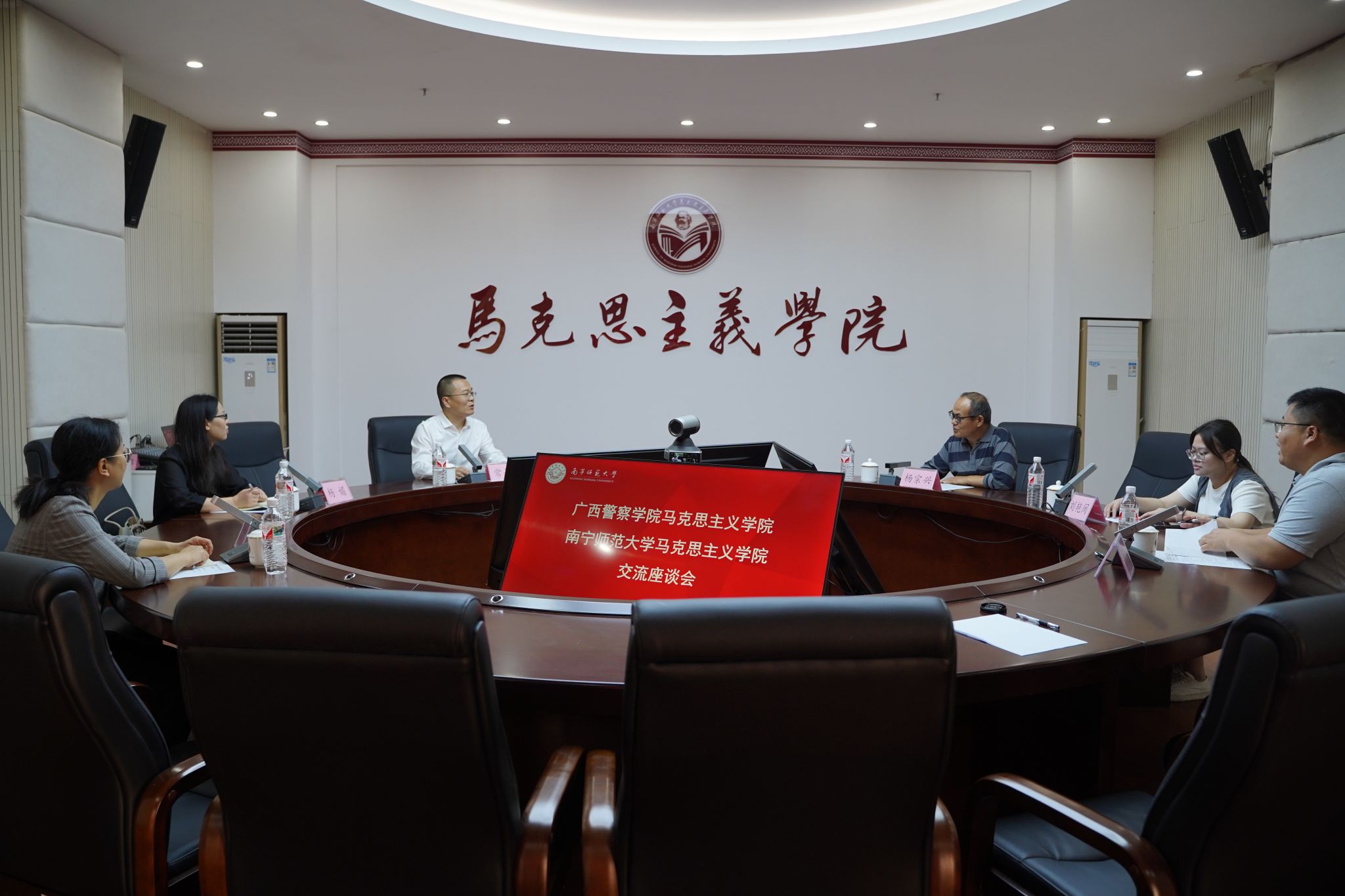参观结束后,双方围绕“形势与政策”课程建设进行了深入交流。杨宗兴主任系统介绍了公司“形势与政策”课程在课程体系构建、团队队伍建设、集体备课模式及教学安排等方面的创新举措与实践经验。刘艳闽主任重点展示了公司实践教学特色,通过“三三制”微教学平台生动呈现了实践课程的育人模式与教学成果。常叔杰教授也介绍了广西警察公司太阳集团tyc4633“形势与政策”课程的建设情况。双方就课程建设中的重点难点问题进行了深入探讨。最后,常叔杰教授表示,公司的先进经验为广西警察公司的“形势与政策”课程建设提供了宝贵参考,此行收获颇丰,希望未来能进一步加强两院间的交流合作。