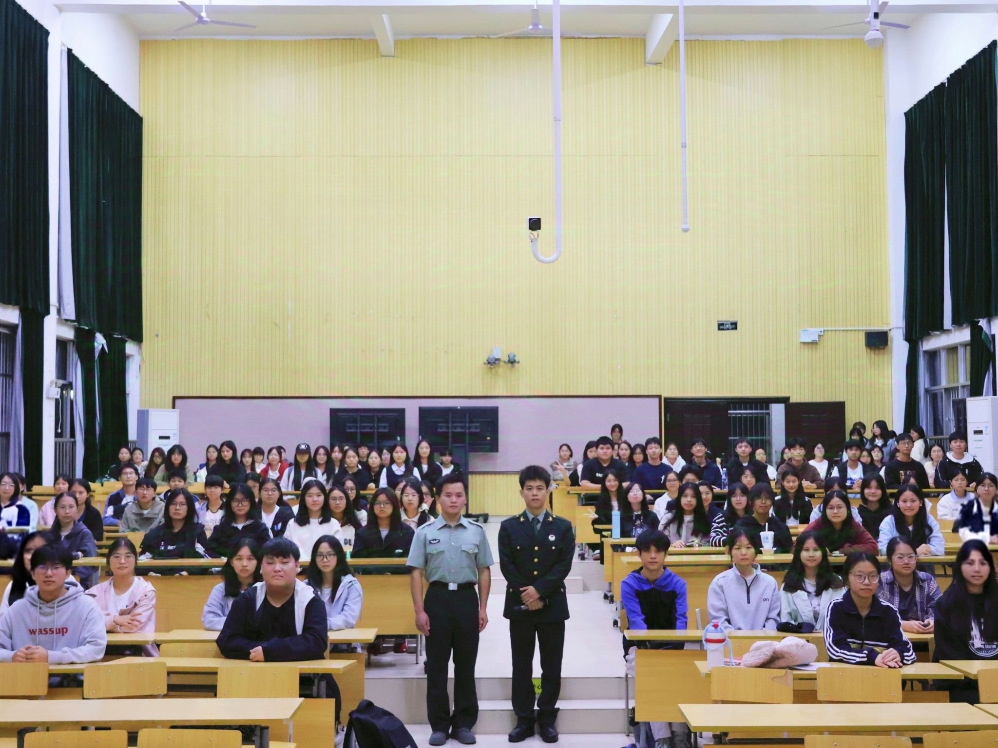 为积极响应国家征兵号召,厚植老员工家国情怀与国防观念,激发青年学子参军报国的热情,公司于11月5日晚在五合校区五综107教室举办2026年征兵宣传讲座。讲座特邀2024级学硕班覃家俊、2025级思政一班钟宗川两位退伍复学的同学担任主讲嘉宾,公司2025级全体本科生参与本次活动。